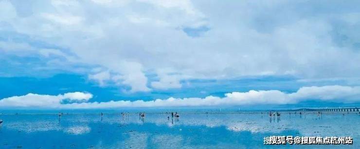 伴着晚风徐徐吹来,海水退潮,露出一片辽阔滩涂,残留着浅浅水洼,映衬出别样的东海之美。孩子们在此戏水踏浪,挖沙子抓螃蟹,俨然童话世界。