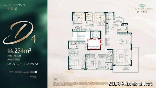 建面约274㎡4房2厅5卫户型