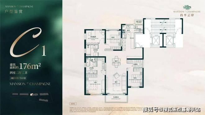 建面约176㎡4房2厅2卫户型