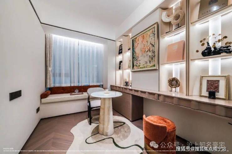 卧室则铺设海派鱼骨拼花地板,借木质肌理的温润与细腻,营造出私密领域的宁静氛围!这种“公区显质感、私域藏温度”的材质分区逻辑,恰是高端住宅设计中至关重要的一笔!