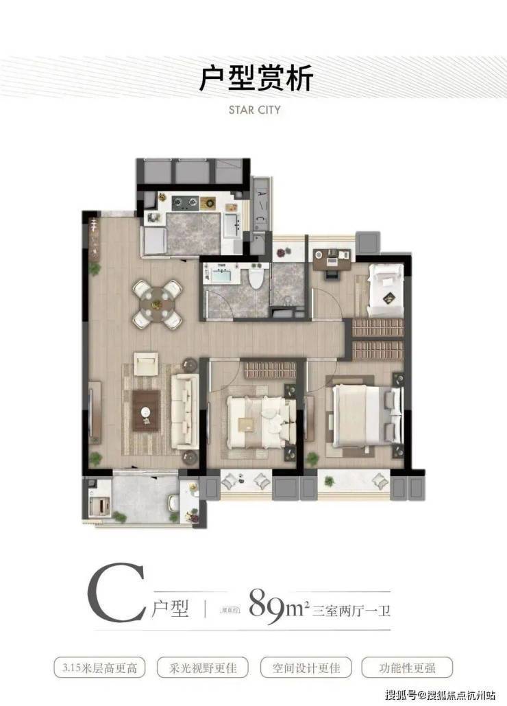 ·建面约88㎡3房:大虹桥范围不到90㎡的户型大部分都只做到2房,而虹桥灿耀星城该面积段实现3房功能性,让自住客户一步到位,也让该产品进入二手市场后具备降维打击的优势!