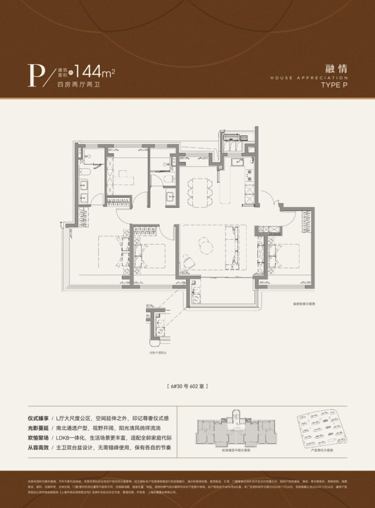 在建面约110㎡ 户型已有的两点之上再度升级,简约面144㎡户型更加匹配三代同堂、二胎之家。