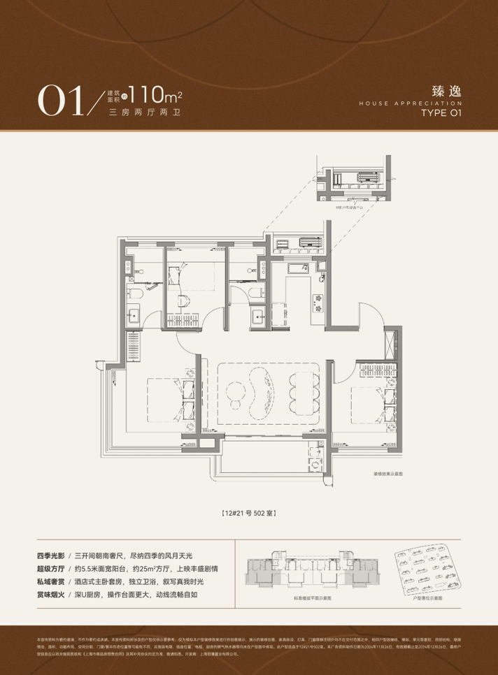 · 主卧酒店式套房+双台盆+270°转角飘窗,尺度与舒适度登峰造极。