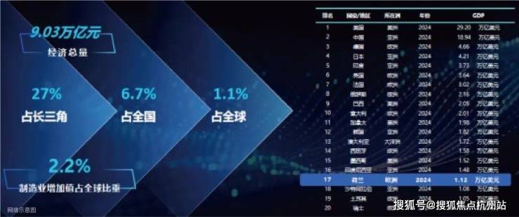 2024年,G60九城的GDP总量达到9万亿(1.27万亿美元),超过荷兰的经济总量,相当于全球各国经济总量排名的17位。