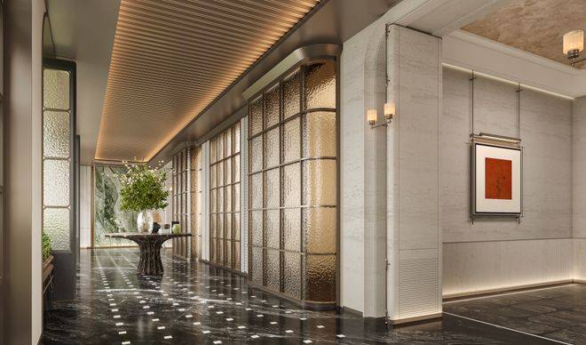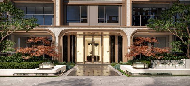 中环铂樾特邀梁志天设计团队(汤臣一品设计者)操刀园林景观,打造 “一轴四园” 立体生态景观体系,以 “乔木、灌木、花卉、草坪、地被植物” 多层次搭配,结合水系、步道、景观小品,营造 “四季有景、步移景异” 的生态社区: