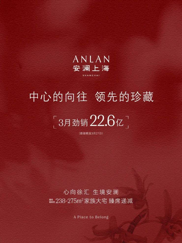 3月,安澜上海劲销22.6亿,以断层式领先优势,成为上海顶豪市场当之无愧的风向标。