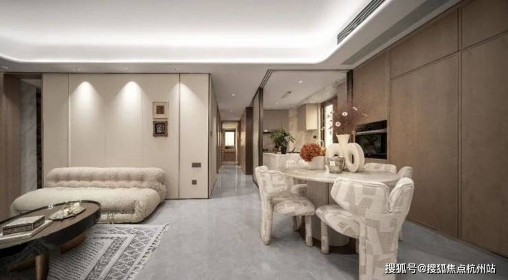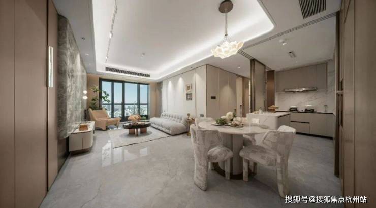 家的核心区变得更开阔:客、餐、厨连成一体,进深可达8.6米,整体LDK空间接近30㎡,尺度感媲美市面上140㎡以上的产品,处处都有生活场景的细节。