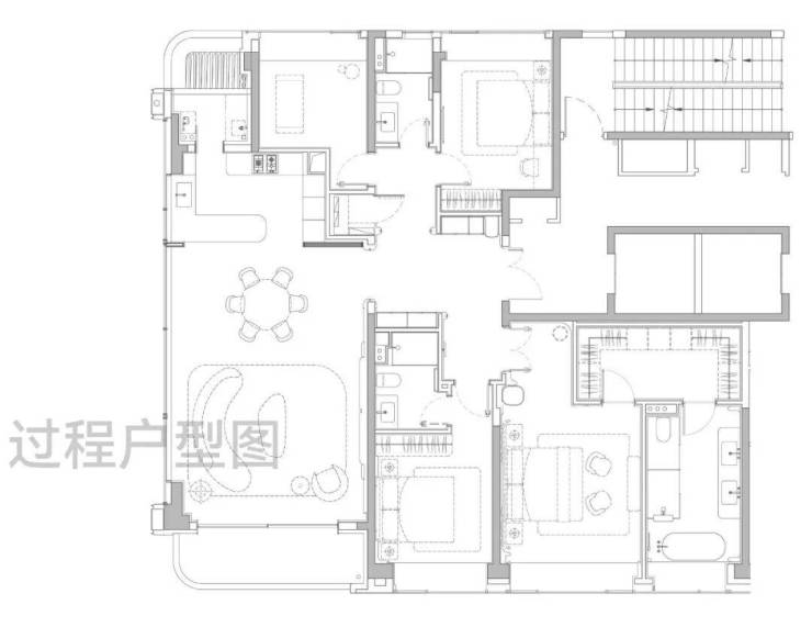 主卧大套房设计带超大主卫和衣帽间, 面积约50㎡ ,尺度感与市面上近300㎡的顶豪拉平。