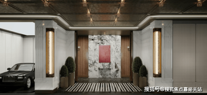 此外,相较于常规顶豪中奢石的简单铺贴,绿城黄浦ONE注重石材的艺术化设计——通过精心设计的拼花设计与错落有致的造型组合,赋予石材墙面艺术表现力;