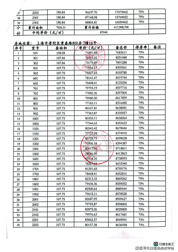 一房一价表: