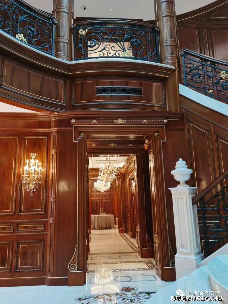 除了这栋超奢华的样板房,其他别墅装修的奢华程度也都超乎想象,随便拿出一栋,内部精致华丽程度都堪比宫殿。比如这栋英国亚当风格别墅的内部装修,延续建筑亚当风格之外,点缀了少量中国元素,精致大器之余,又底蕴十足。
