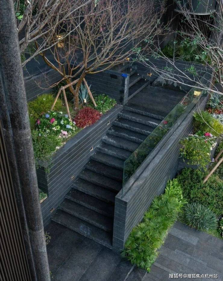 而在3、5号楼之间,则搭建了【围炉夜话】场景空间。古木纹奢石砌成的火炉旁,整木炭化石凳散发着山林野趣,一株红舞姬枫树翩然伴舞。冬日傍晚,好友围坐,体会名门温情。