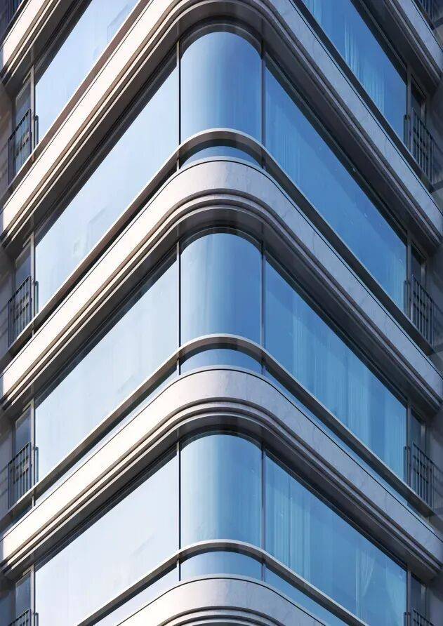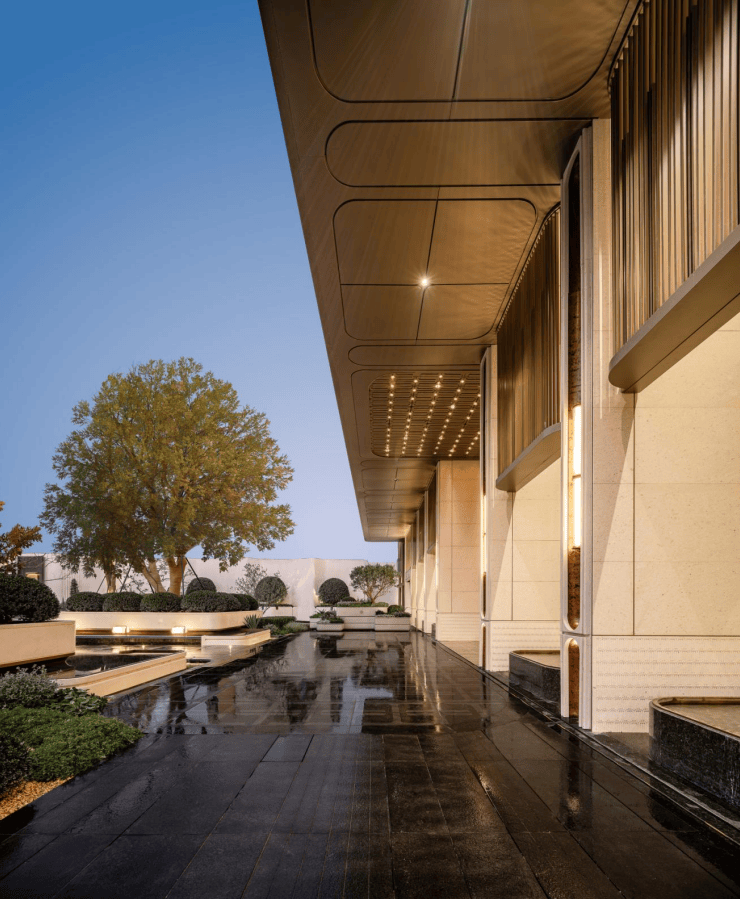 建筑汲取乌达克新古典美学,采用米色石材、白色幻彩铝板,勾勒出典雅高贵的建筑气质,极具辨识度与艺术感。