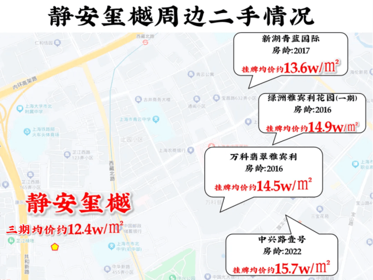 尤其是像静安玺樾所在的静安内环内而言,约12.4w/㎡的均价直接把性价比拉爆!