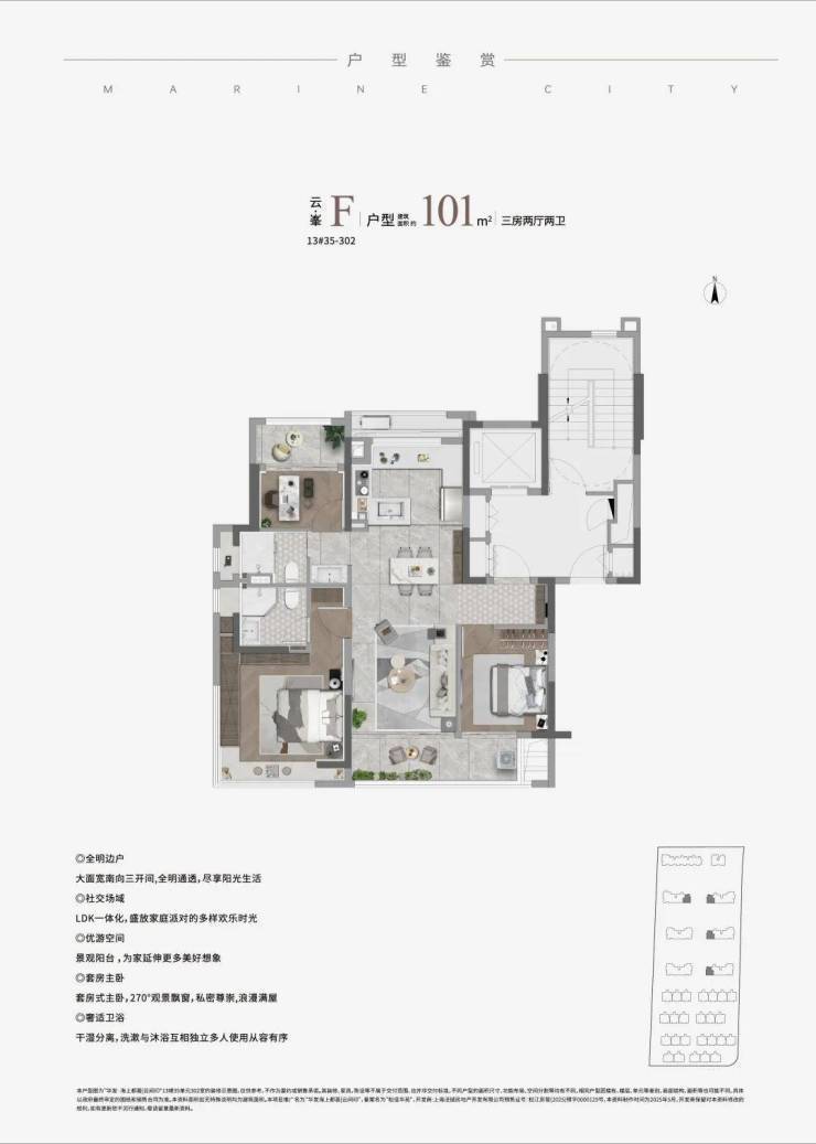 为不同家庭定制生长型空间,勾勒出不同的生活场景,建面约101㎡ 进阶三房,更懂你对生活的向往。