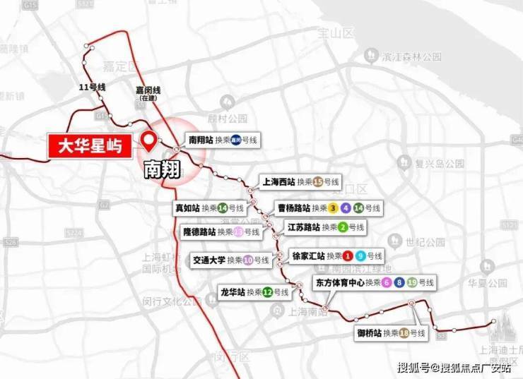 但南翔是11号线和嘉闵线的交汇点,本质是承担资源交汇的中心枢纽,在能级上就碾压其他外环附近板块。