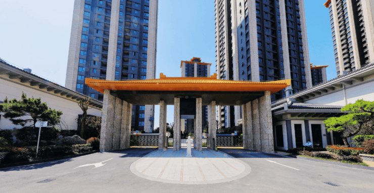 另外,社区的大门也是按照豪宅社区的标准来打造。从外形上看好似一座宫殿,鲜明的配色让恢弘的尊贵感扑面而来。