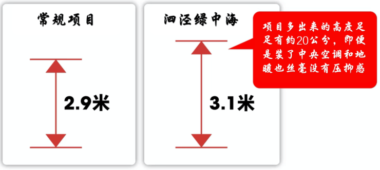 市面普通住宅建筑层高只有2.9米, 而本项目建筑层高3.1米 。