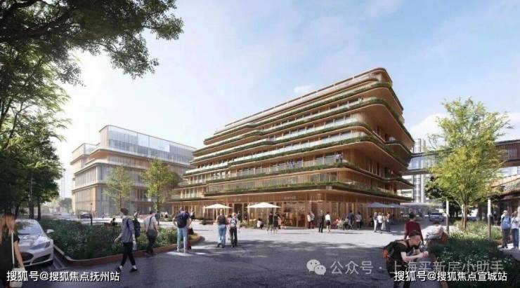 商业中心:紧邻养老中心西侧,建筑退台设计,种植丰富垂直绿化。