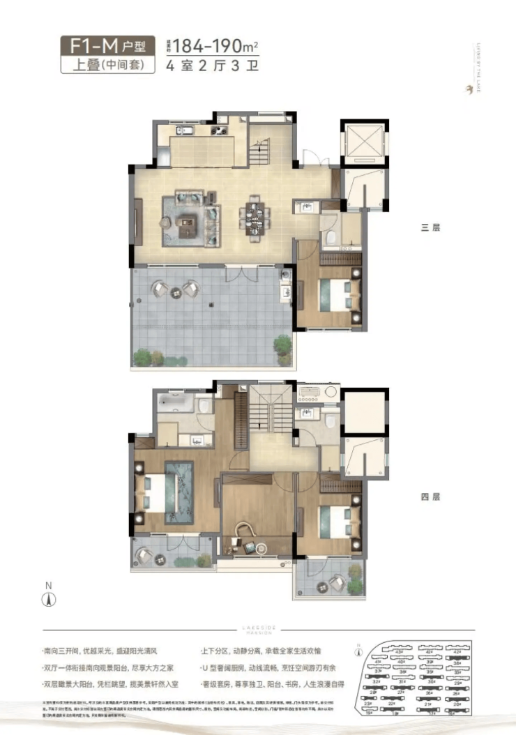 项目洋房采用新亚洲风格设计,大面积玻璃幕墙搭配金属线条,通透轻盈,既保证了节能环保,又创造了270°的观景视野。叠院则传承白墙黛瓦的中式美学,通过“层层退台”设计,实现“层层是花园,户户享园林”的居住体验。下叠赠送约60㎡地下空间和约40㎡私家庭院,上叠配置双露台与阁楼,中叠同样拥有超豪华露台,堪比空中别墅花园。无论是追求庭院生活的家庭,还是注重居住私密性的高端客户,都能在这里找到心仪的房源。