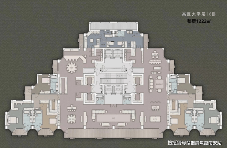 一号楼内的户型为建面约553-1222㎡