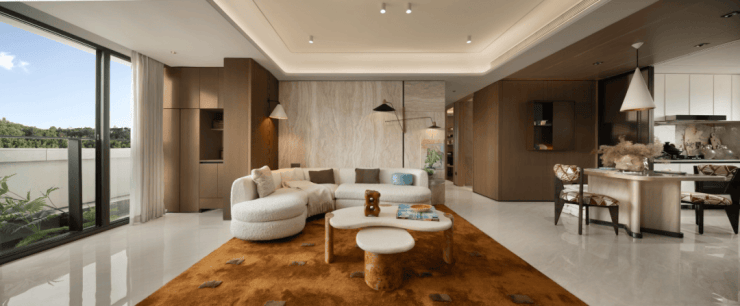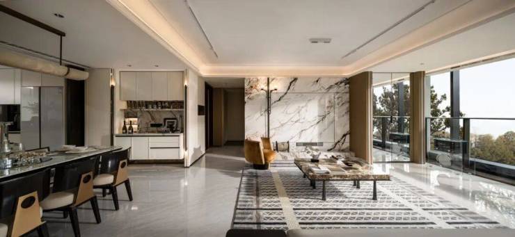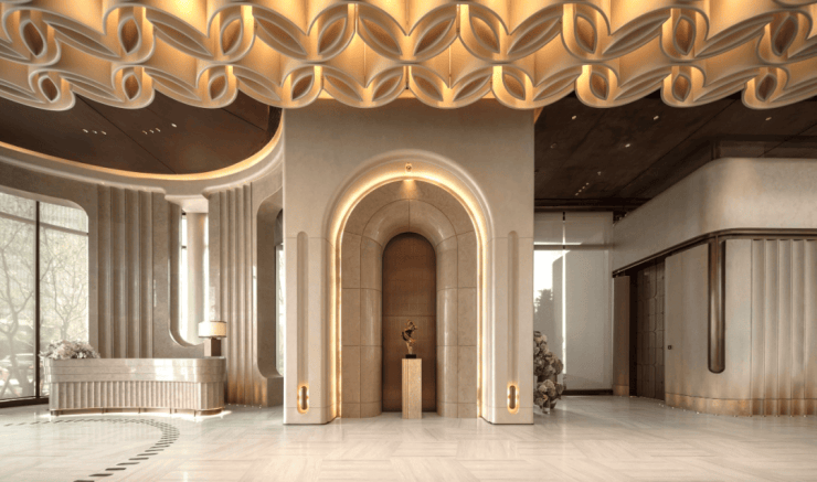 项目归家门庭采用石材,叠加铝板元素,构建出极具质感的空间和松弛氛围,令张江的归家仪式感焕然一新。