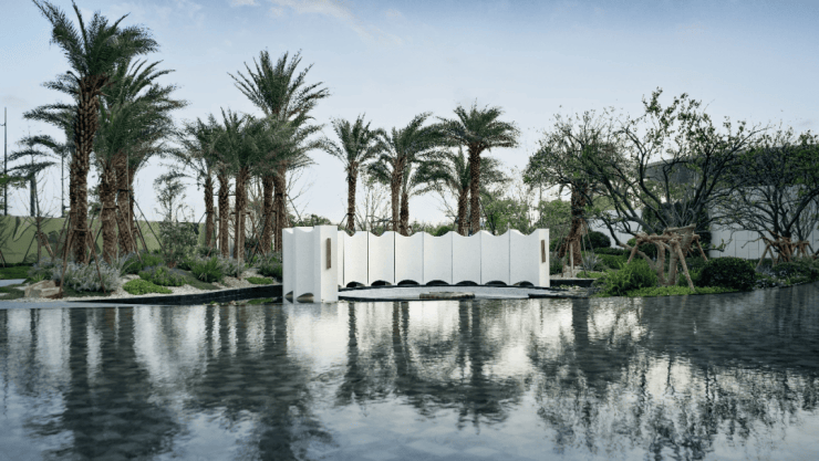 从示范区的打造上来看,保利打造了度假感氛围!采用了国际度假酒店的打造手法,从门头、具有海蓝色的水景、海岛感的花园植物,丰富艺术品的植入,以及非常亮眼的上海首个浮雕水景艺术卡座,营造轻松、惬意的氛围,像这样的松弛场景在项目中数不胜数,给到客户强烈的度假感和松弛感。
