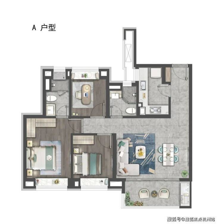 刚需房就要考虑三代人同住或者一家四口居住对房间数量的要求,这样考虑的话,房子最少应该是三居室,那89㎡的紧凑型小三房就更合适。