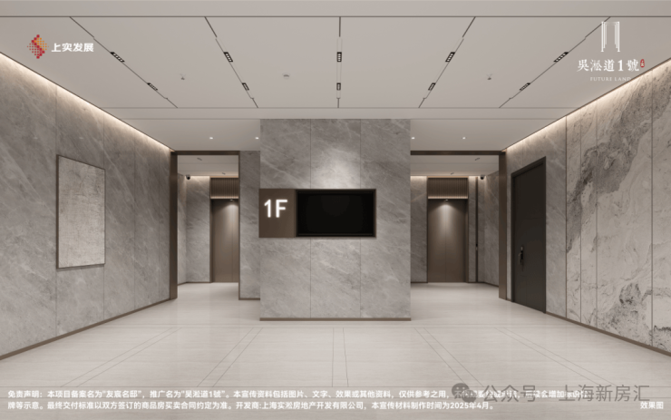 另外,市场上常见单入户门厅,而吴淞道1號采用地上地下双精装入户门厅,质感岩板一体铺就。