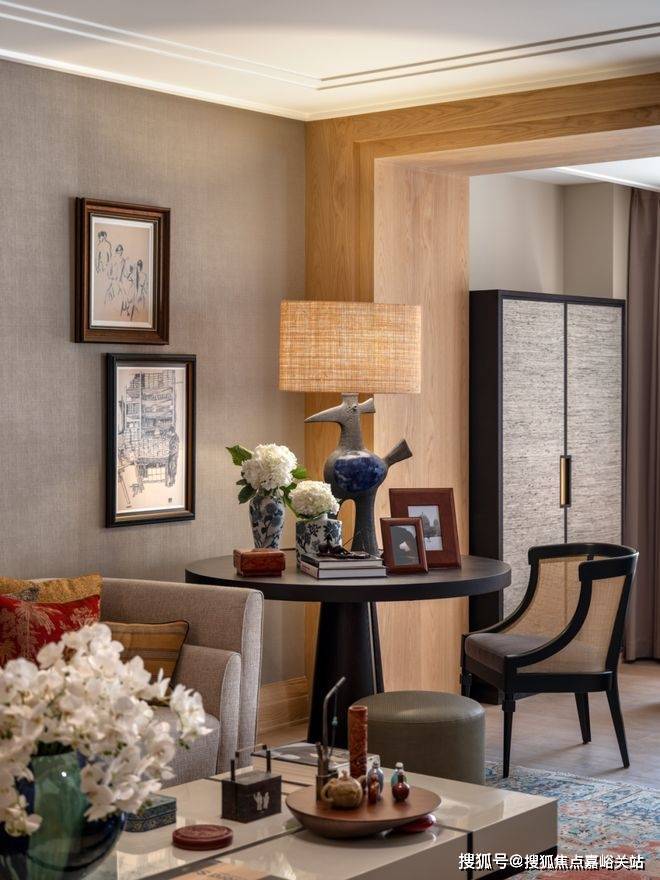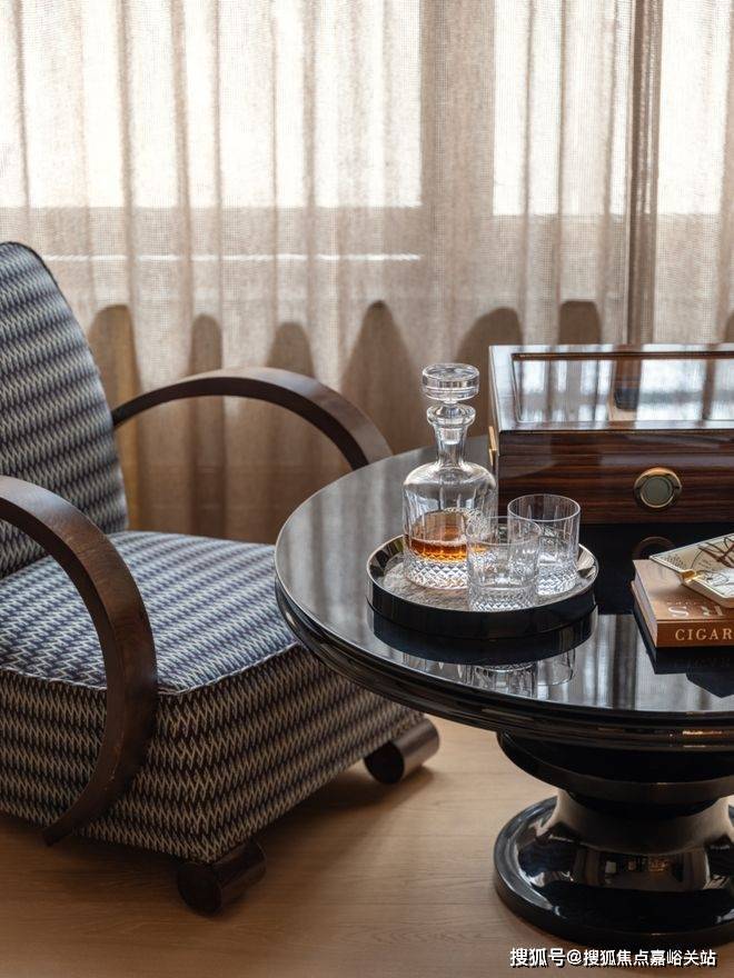 天潼198官方售楼处电话☎️☎️:400-8800-430 设计师于此放置了一张来自20世纪30年代的Art Deco 扶手椅,并通过法国品牌Métaphores的提花面料,重构椅面的色彩与质感,顺应着上海滩的复古风潮,让古典家具以崭新的容貌重回生活。天潼198官方售楼处电话☎️☎️:400-8800-430