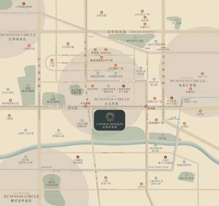 项目周边分布着众多综合医院,如上海市第六医院,上海伽玛医院、上海中医药大学附属光华医院,4.5公里左右还有高端私人医院上海和睦家。