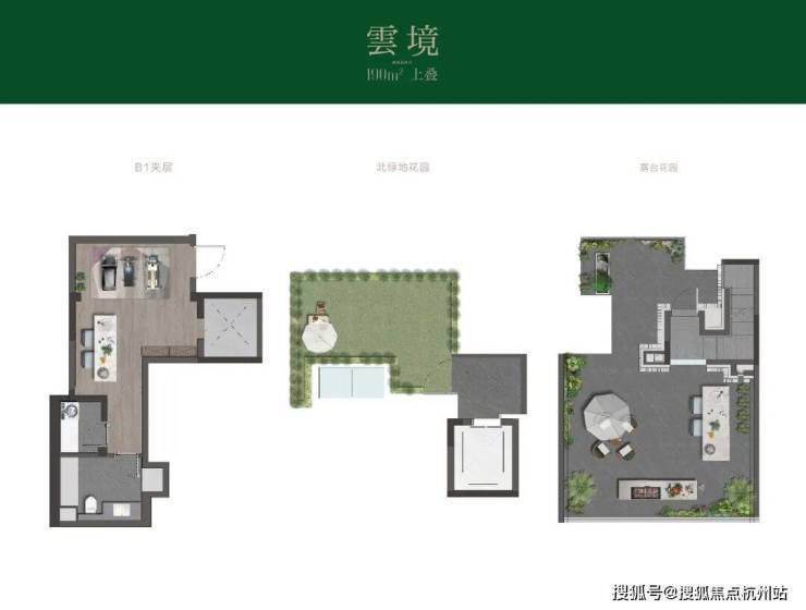 上叠从北绿地花园入户,经私家电梯直接进入3层或4层室内空间,或进入 B1夹层地下室。