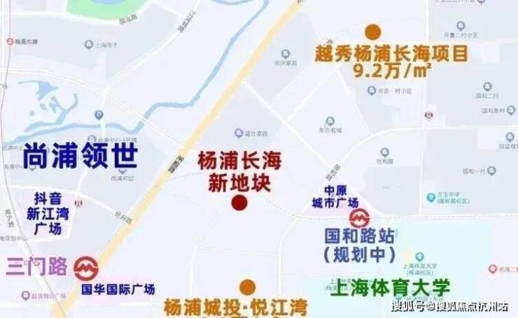 今年3月14日,第一批次首轮土拍中,越秀以总价75383万元,拿下了杨浦区长海社区002-05地块(长海街道340街坊),楼板价43941元/㎡,房地联动价9.2万元/㎡。