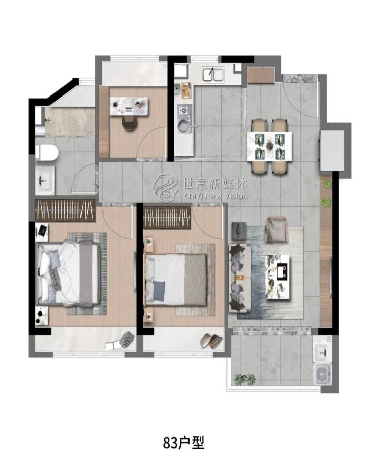 高层建面约83㎡3房2厅1卫