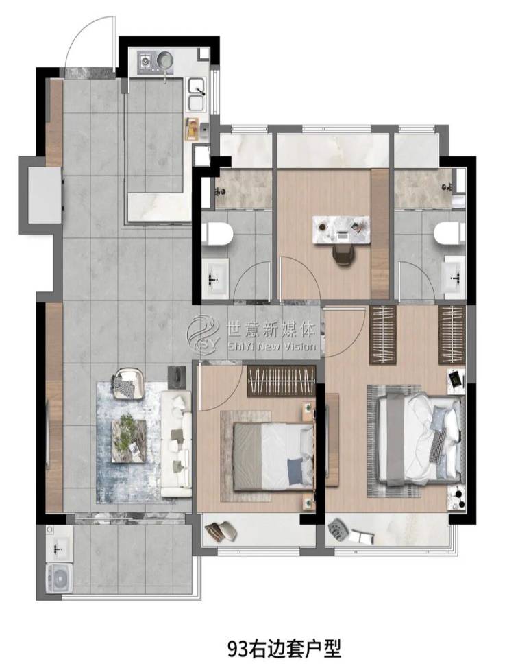 高层建面约93㎡3房2厅2卫