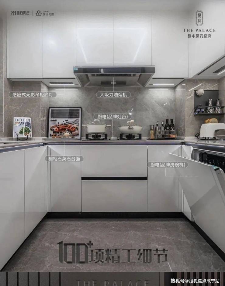 厨房空间,甄选西门子新款的抽油烟机、灶具、洗碗机等,甚至连大部分项目不配备的冰箱也是交付标准;还特别配置了轨道插座、前端净水器和凉霸;吊轨金属玻璃移门,既美观又方便清理。