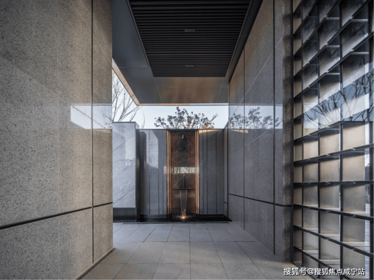 第五重:下沉庭院打造一体式景观,墙面流水至地面,结合水中花池营造出纯粹的自然之境。