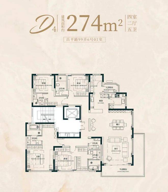建面约176㎡4房2厅2卫户型: