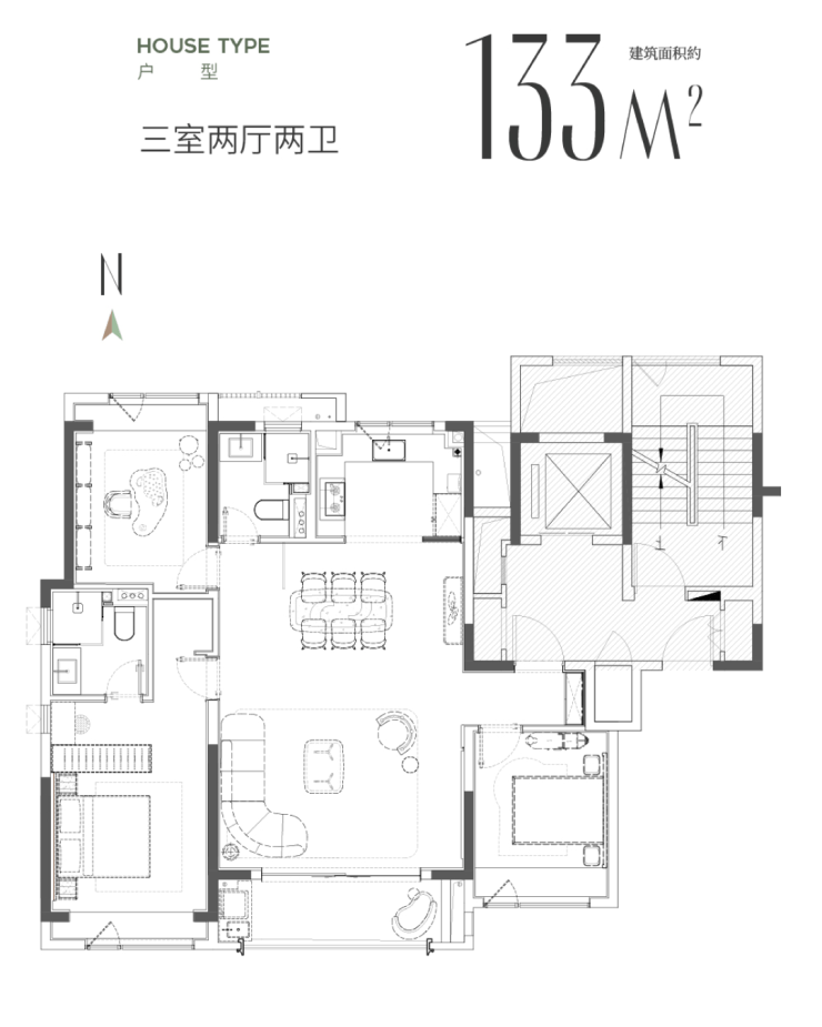 3房:建面约100㎡3房、133㎡大三房