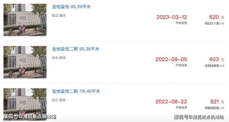 其他次新小区,比如泗泾大盘金地玺悦,二手房成交价也都在6.3-6.9万/㎡之间。