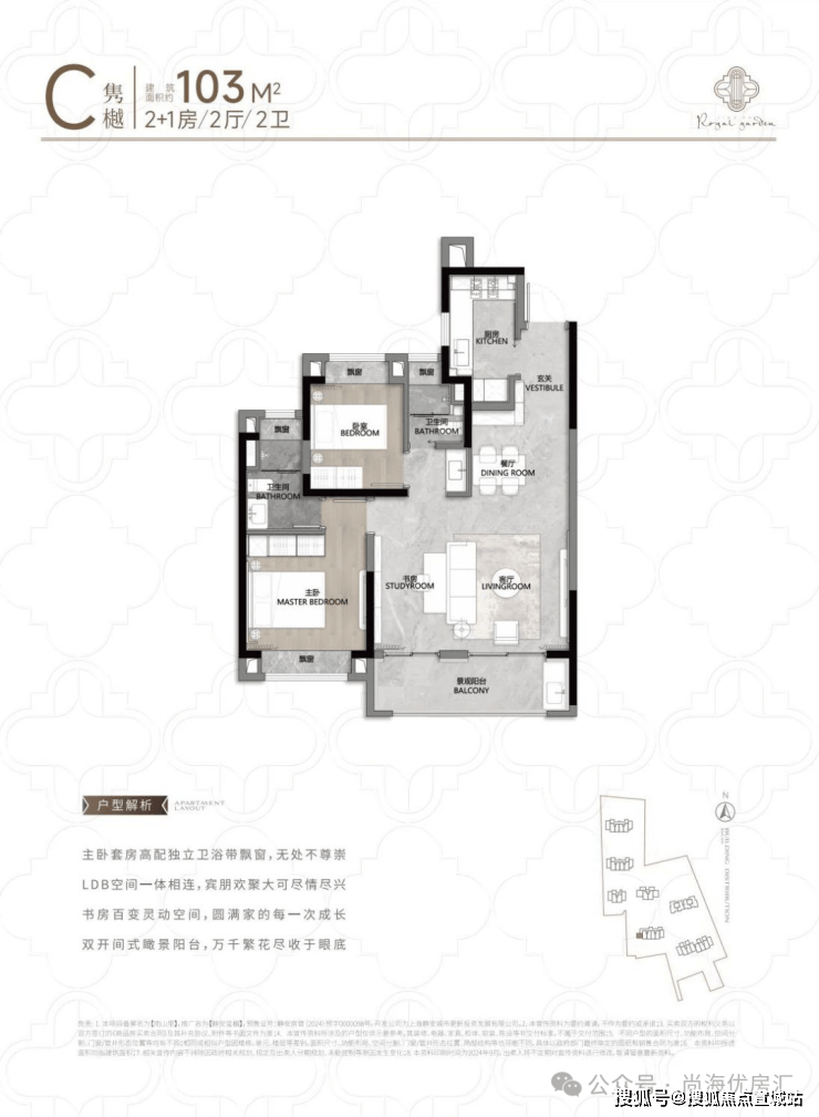 建面约100-103㎡的三房B户型,全明空间,尺度舒适,功能完备。开阔的空间格局,每日与阳光清风作伴舒适惬意。三房设置,满足从小太阳家庭到三代同堂的全周期家庭需要。