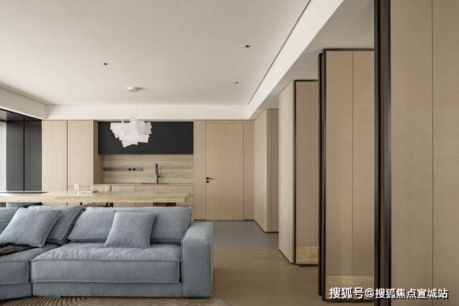 入户大门配置的是钢木复合门+智能门锁,十分厚重。玄关,给到满满的归家仪式感。客餐厅一体化,无明显面积浪费,L型的厨房,操作动线非常流畅。主卧的面积达到约14㎡!整体看下来,突出的就是尺度感。