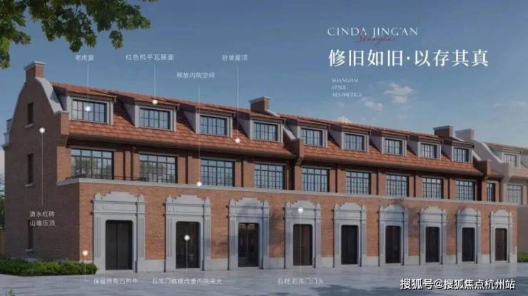 项目外立面并非简单模仿传统样式,而是通过对孟莎式屋顶、清水红砖外墙、传统石库门门头、老虎窗等元素的保留与转译,实现海派建筑语汇的当代延续。