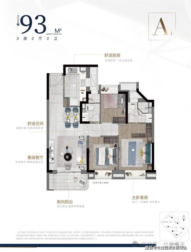 建筑面积约93㎡户型做到三房两厅两卫, 比别人“多一卫”的设计,让三代同堂依然从容有度,更高性价比收获大宅生活感。让空间功能性、舒适度足以媲美市面上100㎡+户型。南向三面宽,拥有更多采光面,LDK一体化,打破空间界限,生活大有享法。