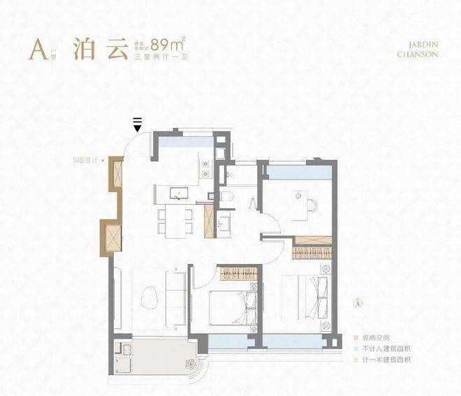 不到90㎡的建面实现3房一步到位,功能性上符合市场需求!同时利用科学的收纳和S墙设计保障了室内空间的井井有条,又通过大量飘窗和阳台等提升尺度感,尤其是厨房带飘窗你见过吗?
