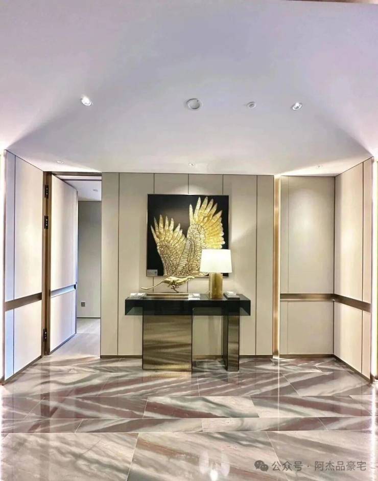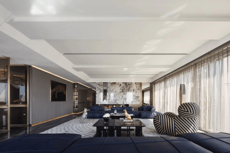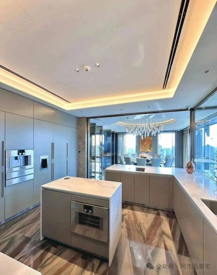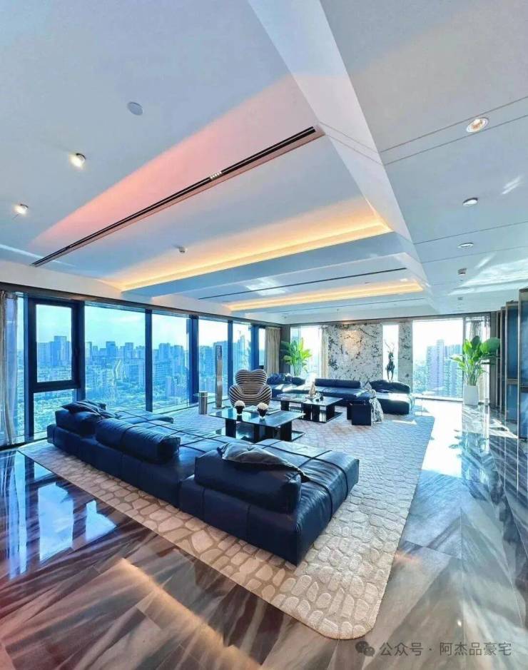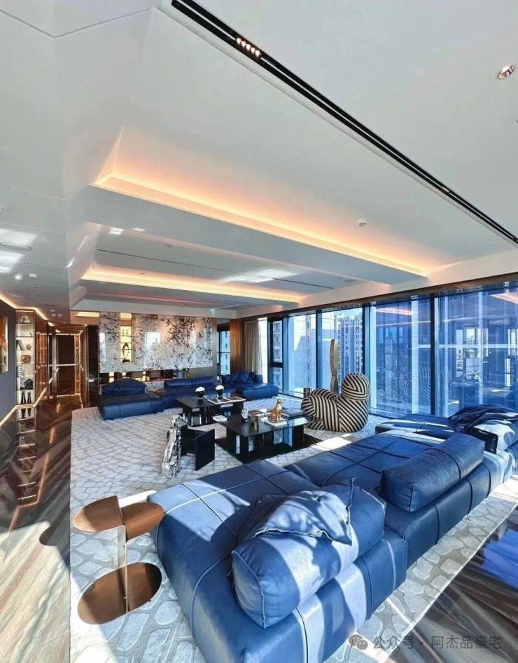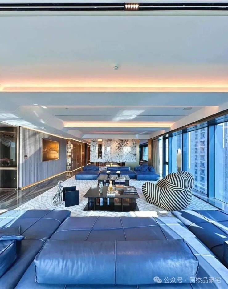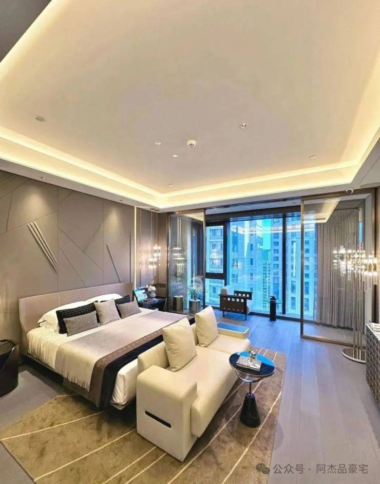 装修上,将时尚与奢华巧妙融入每个角落,所有的窗帘、移门、提升窗、灯光、空调、新风、地暖都可以通过手机远程控制。