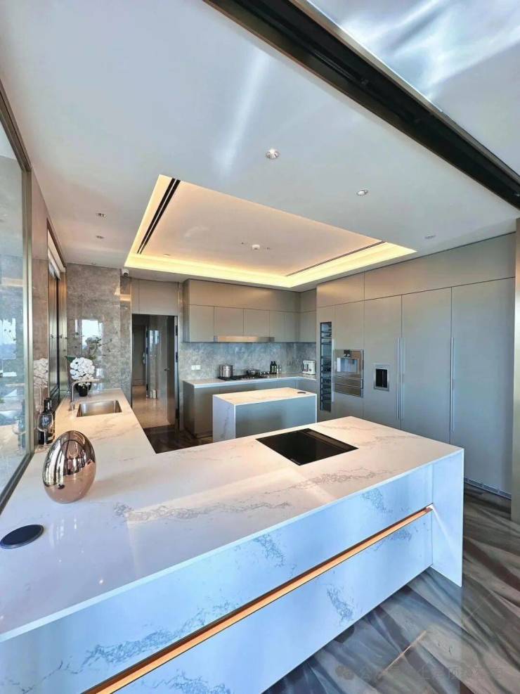 豪装交付,装修标准约1.5万元/㎡,汇聚嘉格纳厨电、 装甲门、 橱柜、 衣帽间、大金 定制空调新风系统、威能水循环地暖、滨特尔三层净水系统等国际一线品牌;智能家居系统,所有窗帘、移门、提升窗、灯光、空调、新风、地暖均可通过手机远程控制