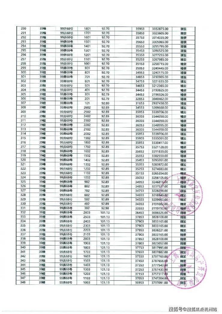 以下为项目最新一房一价表