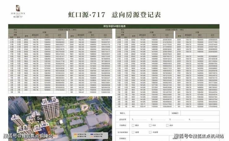 虹口源·717项目一房一价表: