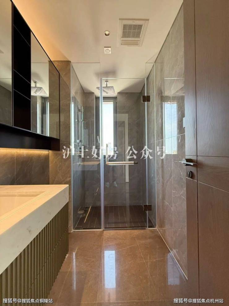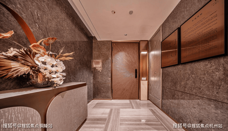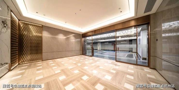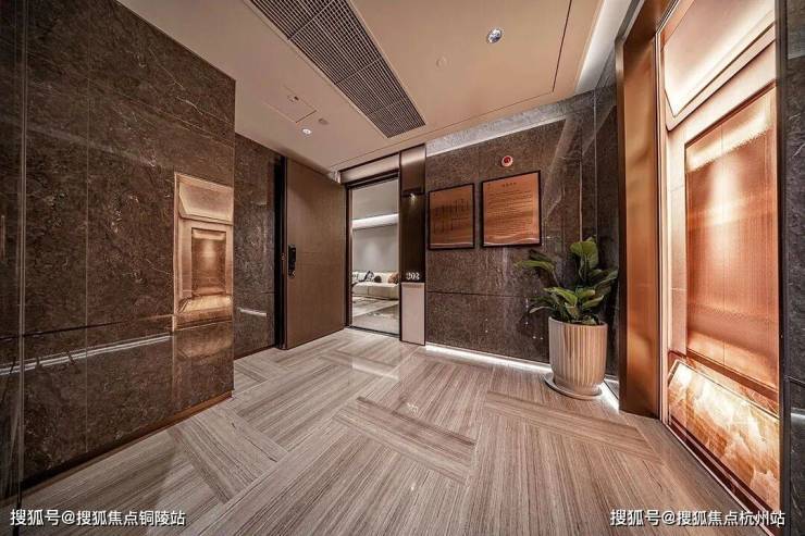 值得一提的是,项目打造的归家电梯,轿厢要比一般的电梯高,空间感打造上相当出彩,搭配无主灯悬浮吊顶与金属墙面设计,海派归家仪式感拉满!匹配一梯一户设计,隐私性与安全性兼得~未来业主也可以将此处利用起来,增添富余的收纳储物空间~